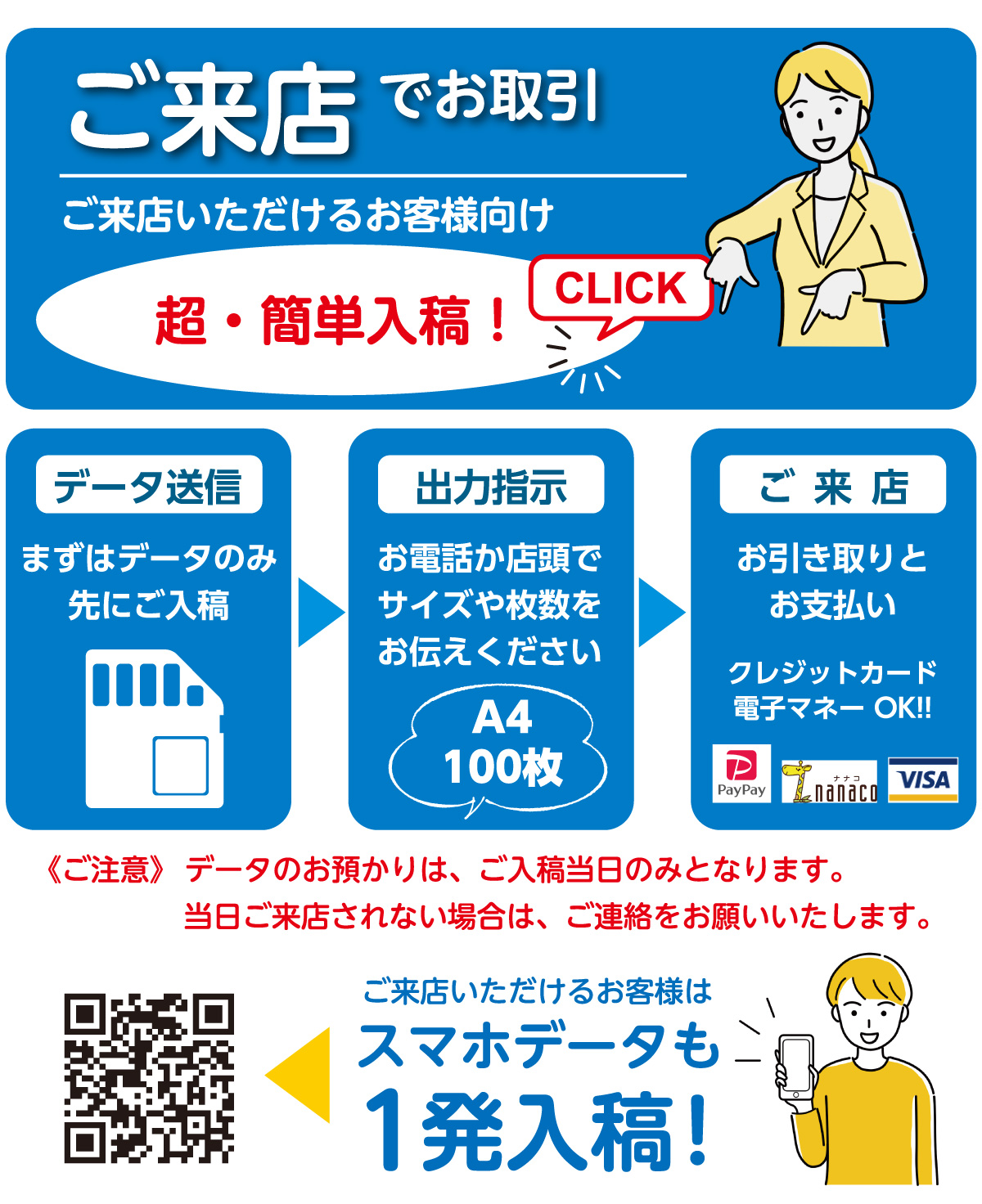 出力作業はご来店中のお客様を優先させていただきます。