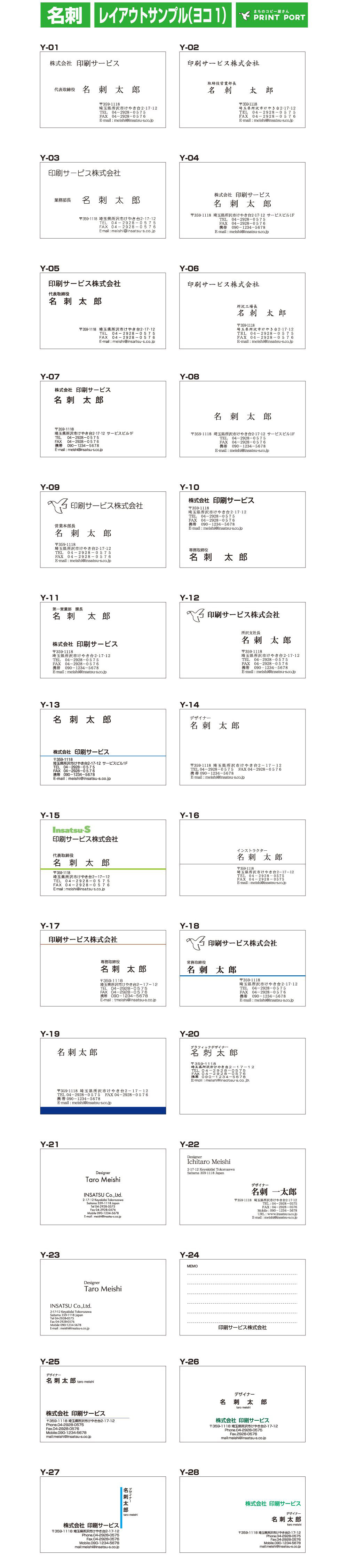 ●お客様がお持ちになりました名刺のレイアウトをそのまま作らせていただくか、下記掲載のレイアウトサンプルからお選びください。
