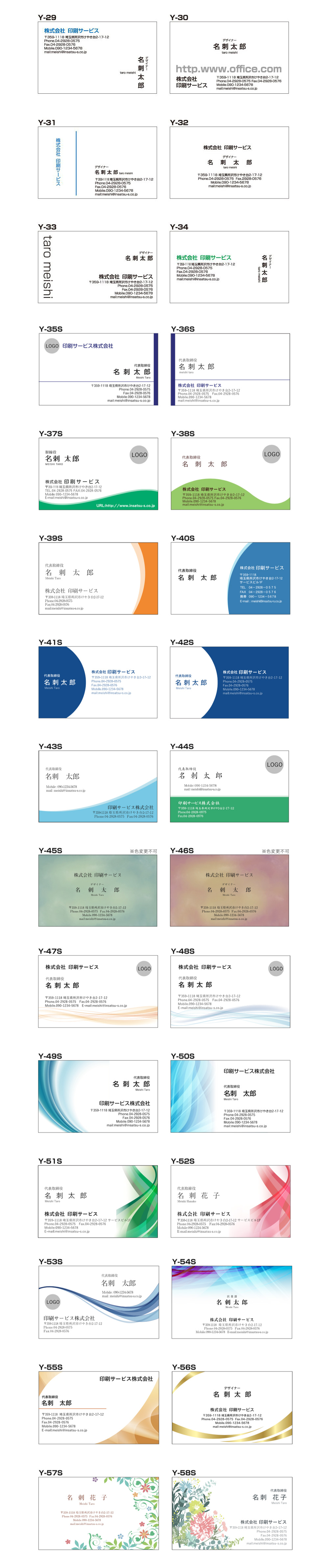 ●カラー刷りの場合、今お使いの名刺の色を極力再現しますが、刷り色見本からのご指定も可能です。