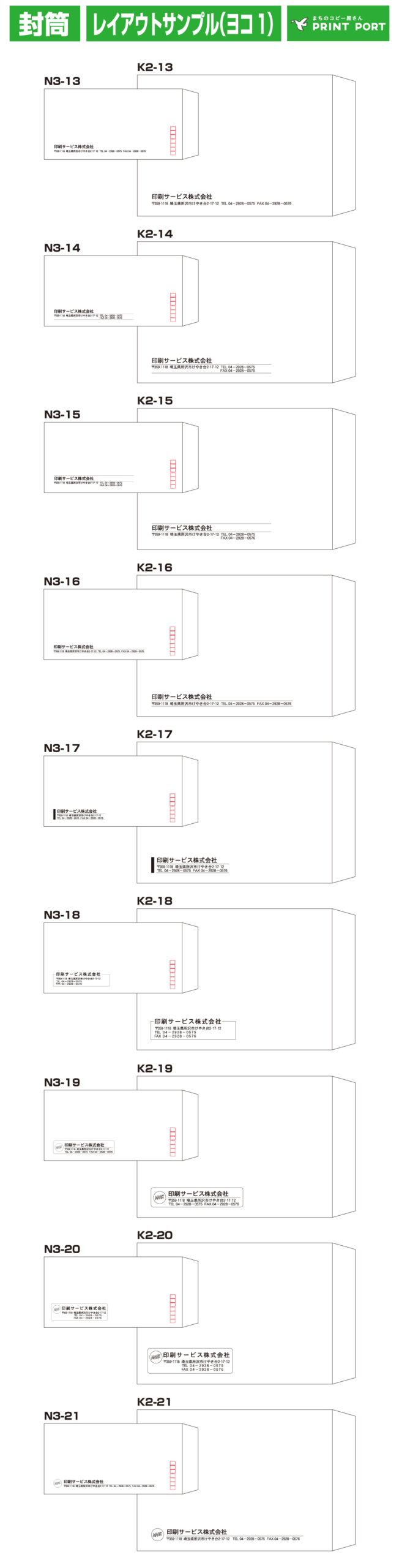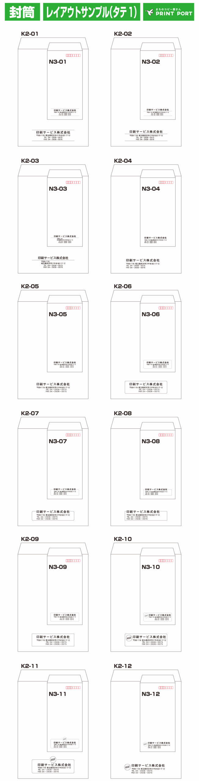 お客様がお持ちになりました封筒レイアウトをそのまま作成させていただくか、当店で用意しているレイアウトサンプルからお選びいただき印刷いたします。