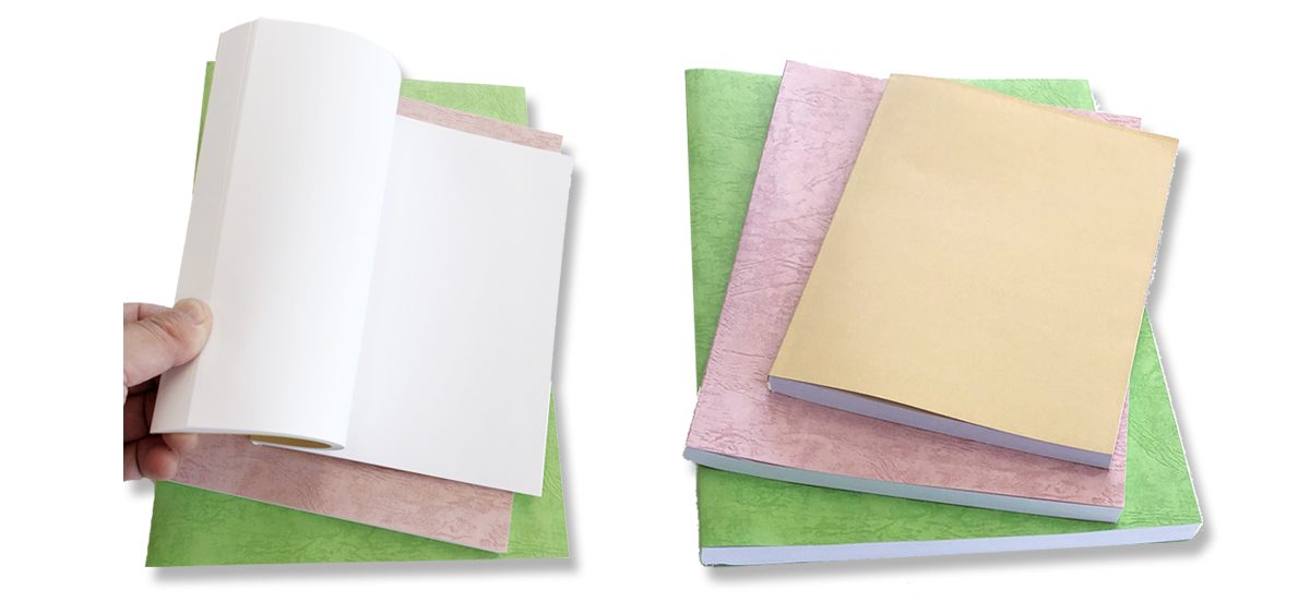 用紙の背の部分に強力な糊をつけて、しっかりと製本することが可能です。