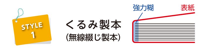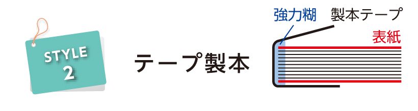 用紙の背の部分に強力な糊をつけて、背を製本テープで留める製本です。